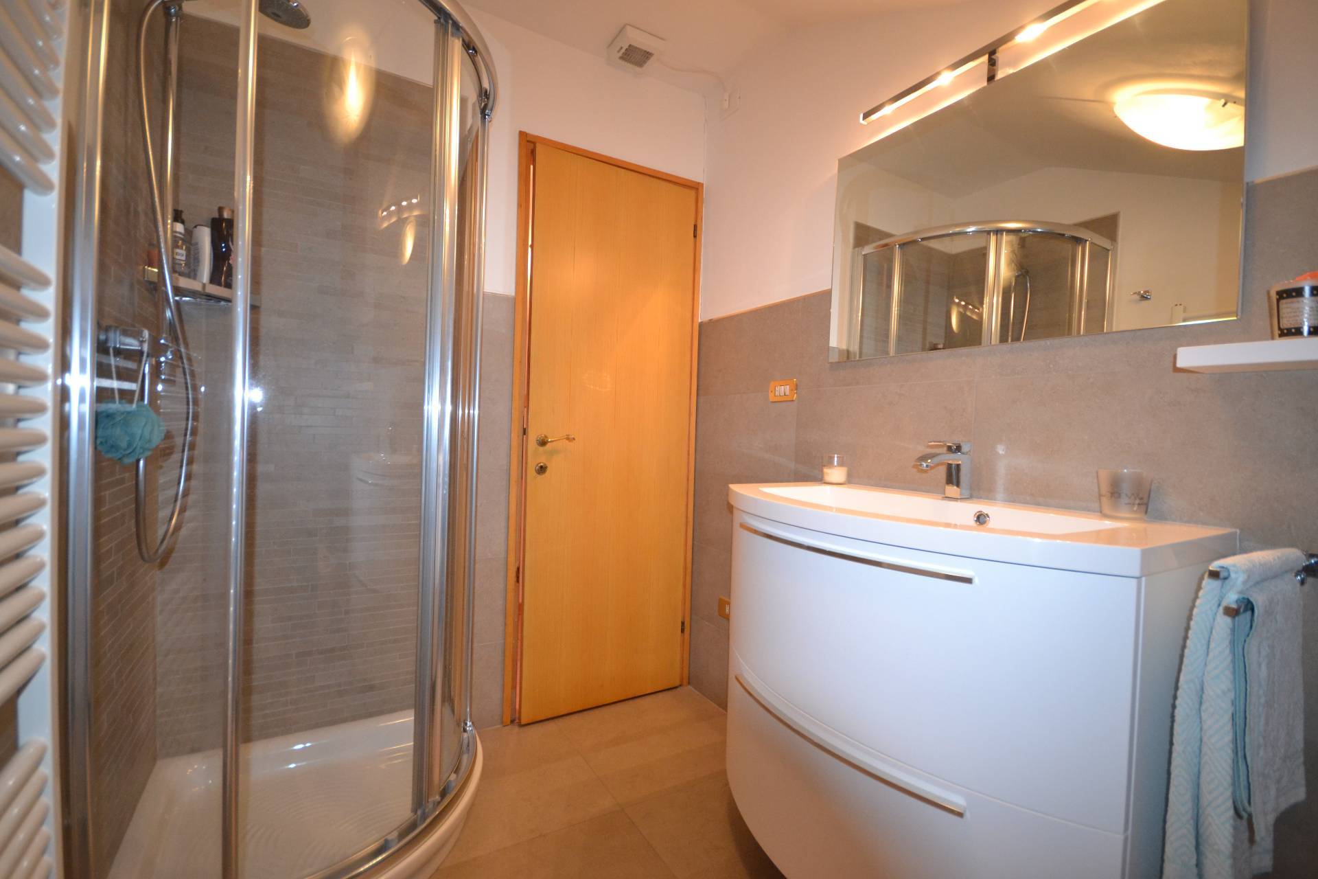 L'appartamento è inoltre dotato di un bagno completamente ristrutturato con comoda doccia, con tutti i confort.