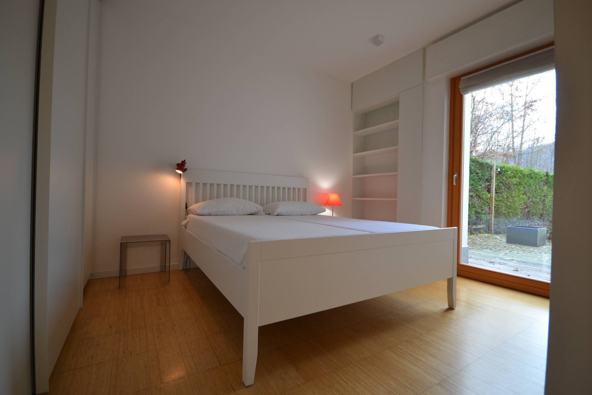 Finiture: Pregio (parquet in bambù, porte scorrevoli in vetro)